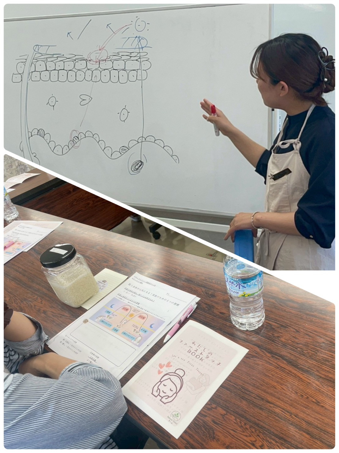 やさしい触れ方(ファーストタッチ)を体験していただきました。